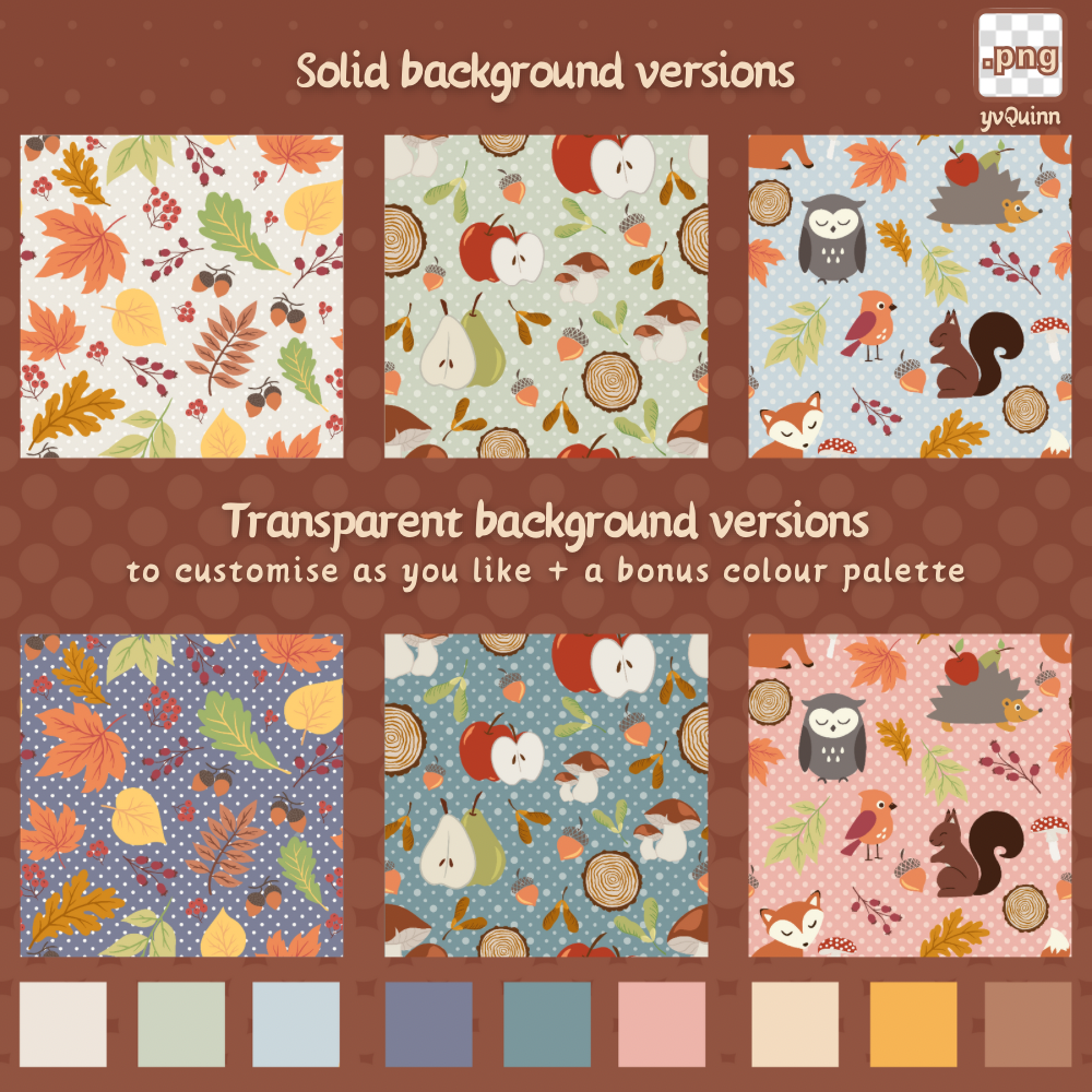 3 seamless, customisable Autumn-inspired patterns