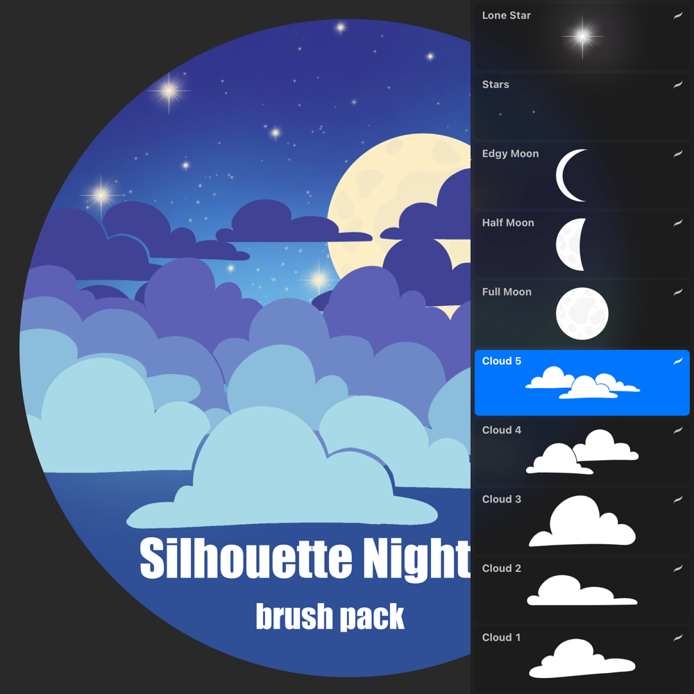 Silhouette Night Sky - stamp brushes for Procreate
